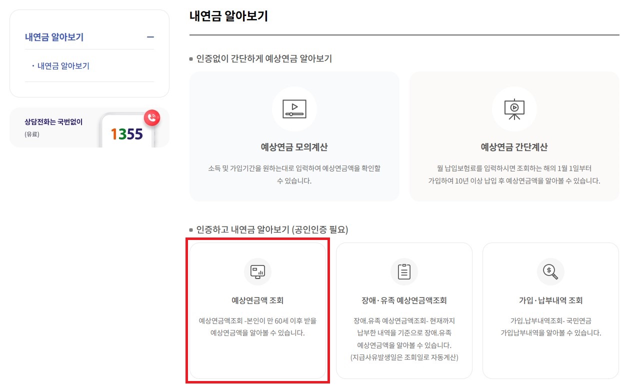 2. 예상연금액 조회를 클릭합니다.