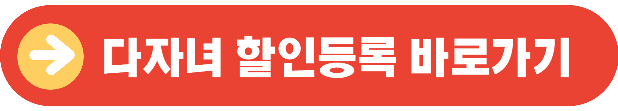 | 6. 다자녀 가정 | [다자녀할인등록 홈페이지]에서 관리자 승인을 받은 차량 가. 행정정보로 본인 또는 배우자가 ㄷ자녀 가구* 대상임을 확인 나. 차량등록증, 가족관계증명서 등 제출서류*로 차량 실 소유자임을 확인 |