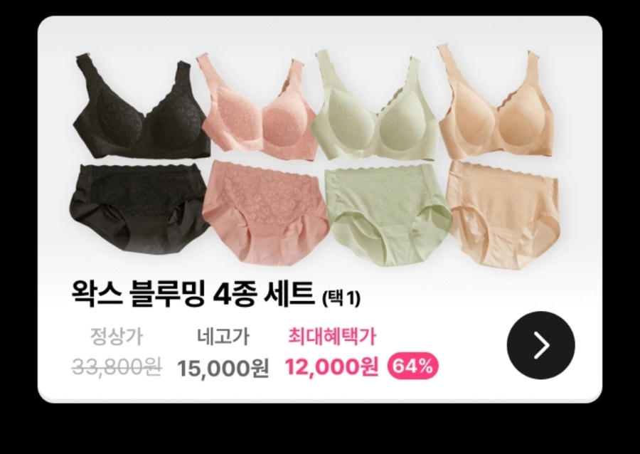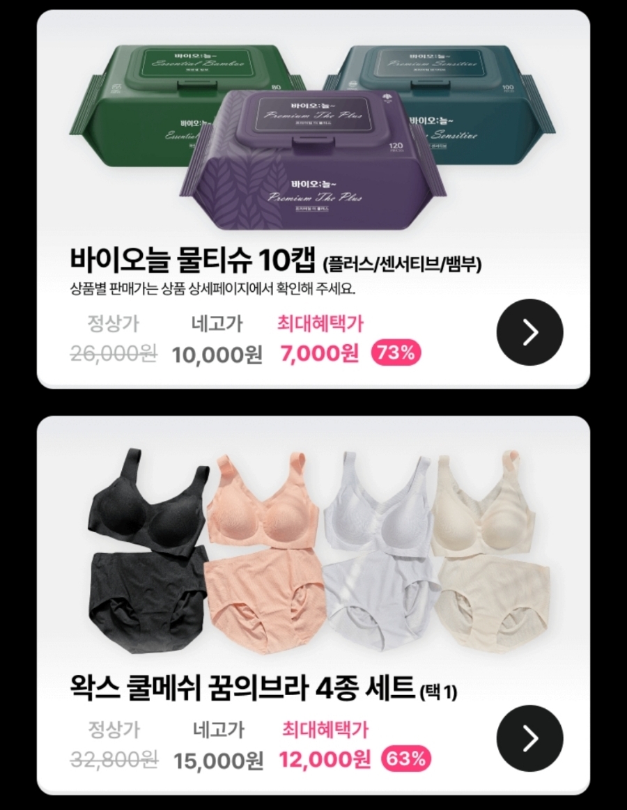 물티슈도 10캡에 10,000원, 속옷도 1종 세트에 15,000원입니다.