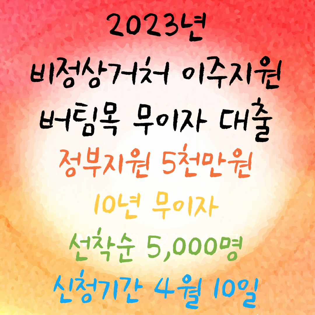 2023년 비정상거처 이주지원 버팀목 무이자 대출 선착순 5000명, 신청기간, 대출 대상자, 대상요건, 신청대상, 신청절차