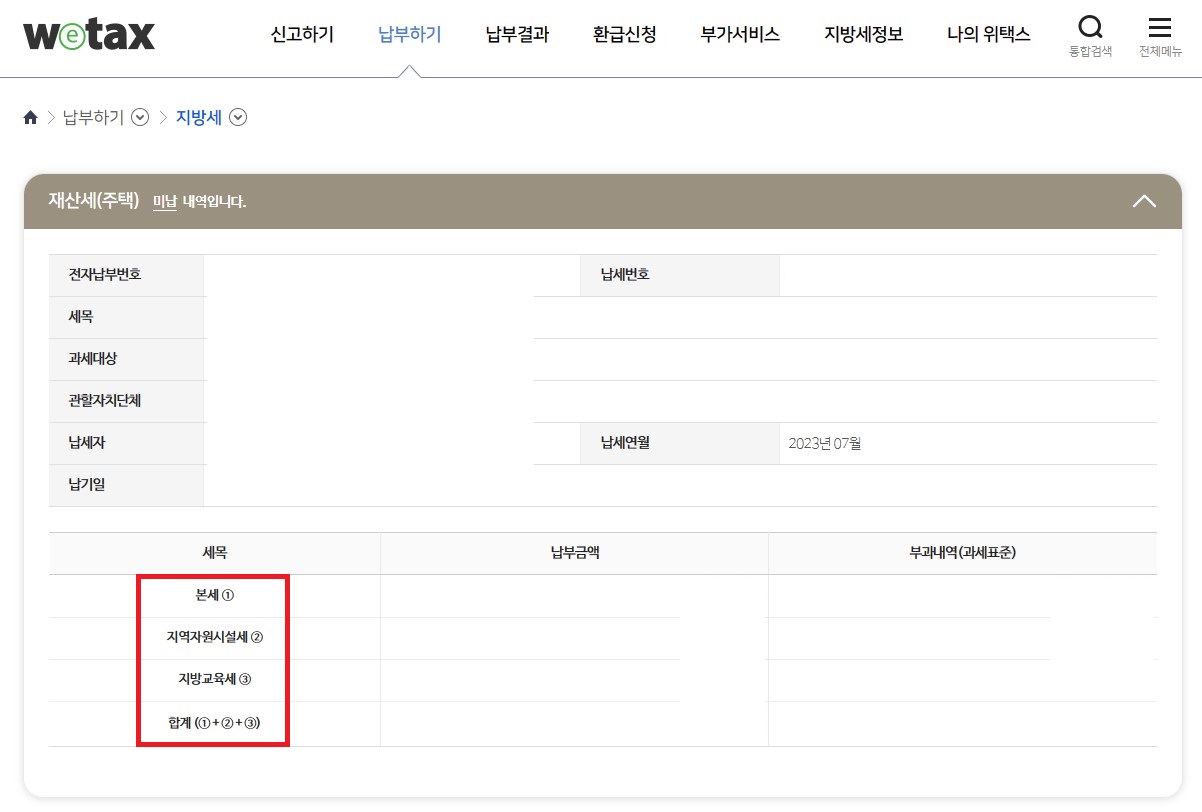 서울시의 경우 ETAX 이택스 홈페이지를 통해 납부하고, 그 외에는 Wetax 위택스를 통해 조회 및 납부하면 됩니다. 참고로 현재 거주지가 아닌 주택 소유지를 기준으로 하면 됩니다.